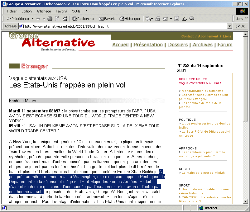 sur le Pentagone et que les attentats du 11 septembre étaient
